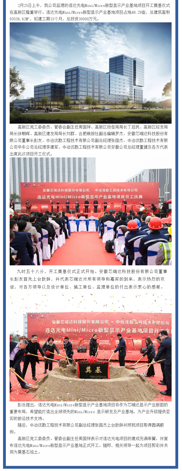 連達(dá)光電Mini/Micro新型顯示產(chǎn)業(yè)基地項(xiàng)目開工奠基