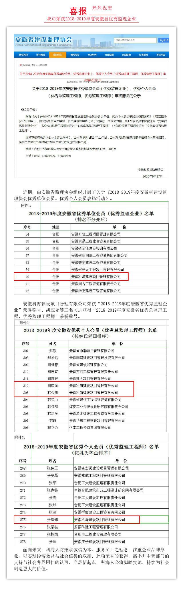 熱烈祝賀我司榮獲2018-2019年度安徽省優(yōu)秀監(jiān)理企業(yè)
