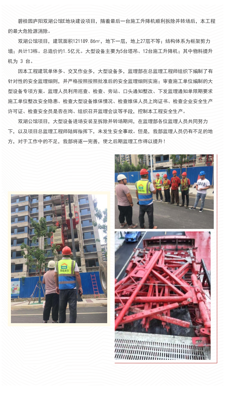 關(guān)于雙湖公館E地塊大型設(shè)備全部安全拆除 并順利轉(zhuǎn)場的喜報
