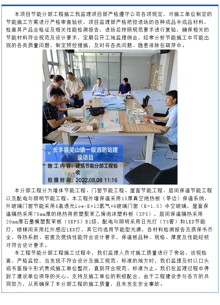 長豐縣吳山鎮(zhèn)一級消防站建設(shè)項目,建筑節(jié)能分部工程順利通過驗收