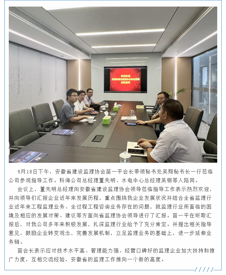 安徽省建設(shè)監(jiān)理協(xié)會領(lǐng)導(dǎo)一行蒞臨指導(dǎo)